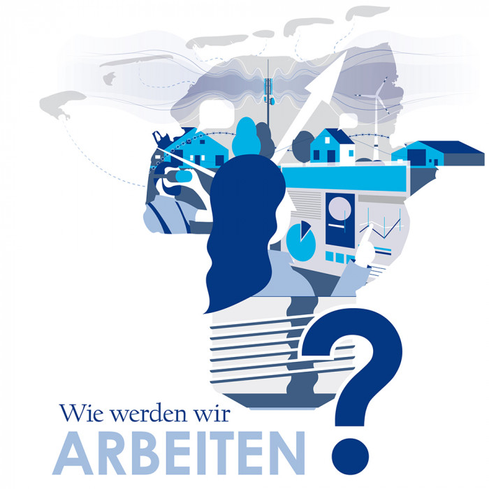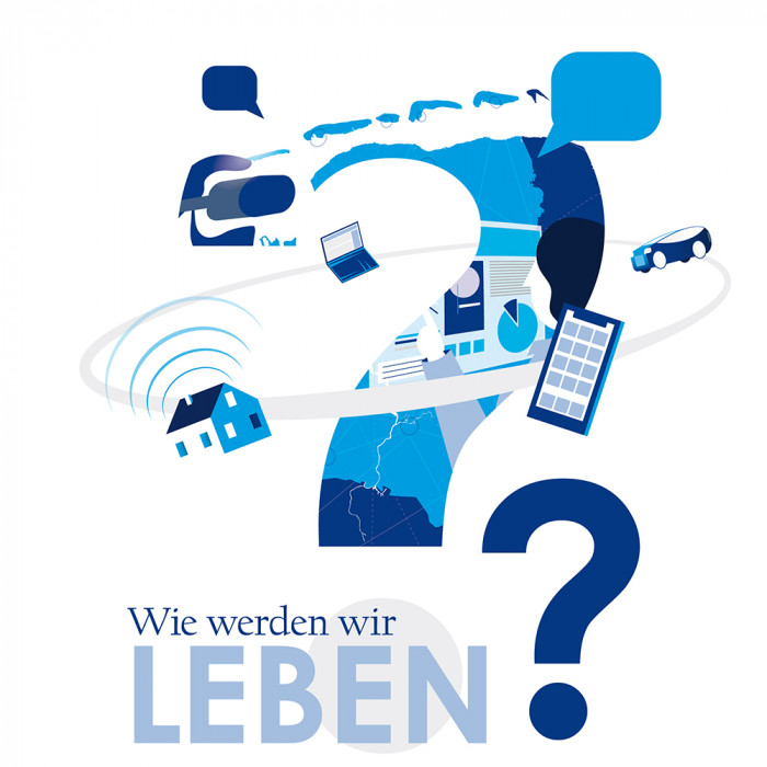 Für die redaktionelle Serie „Zukunft Ostfriesland“ entstanden mehrere Grafiken, die die Themen Technologie, gesellschaftliche Entwicklungen und Herausforderungen der Zukunft thematisieren.